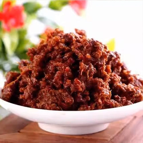 云南骨头生是一种传统的风味食品,主要以猪肋骨、排骨软肋、猪颈肉、三线肉及内脏为主料,通常在冬腊月制作。制作时需将原料剁碎,经盐腌、晾干后加入辣椒粉、花椒粉、姜丝等调料,密封于土陶罐中发酵半年左右。成品含有丰富的钙质和蛋白质,具有促进儿童骨骼发育及辅助治疗软骨病的功效,可直接蒸食,亦可搭配野生菌、土豆、豆腐等食材炖煮,当地人还将其与鸡蛋混合炖制。腌制时需精确把控调料配比,土陶罐需用白酒涮罐杀菌后压实封存。因保存时间长、搭配多样且富含营养